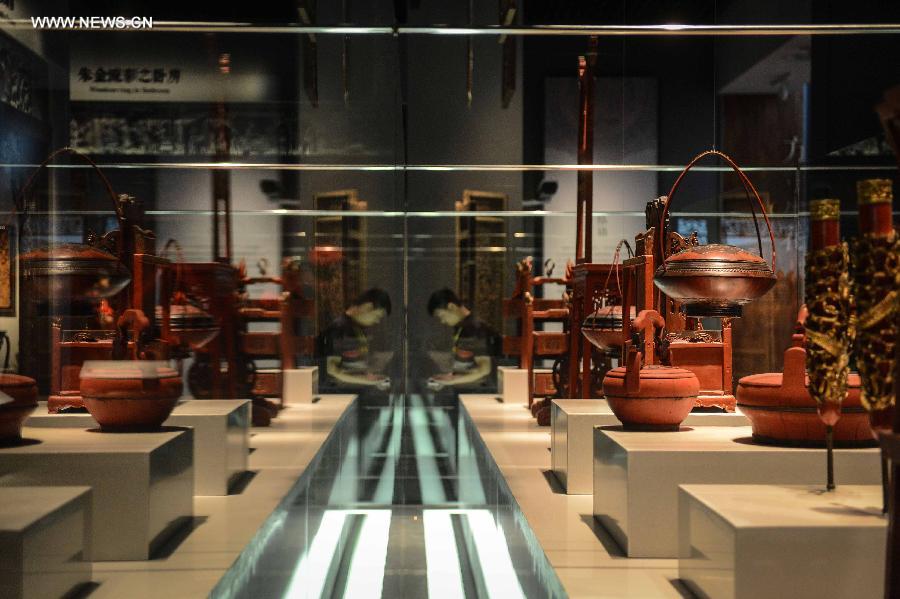 Photo taken on Oct. 16, 2014 shows woodcarvings at the China Woodcarving Museum in Dongyang City, east China's Zhejiang Province. The museum will officially open to the public on Oct. 18. (Xinhua/Xu Yu)