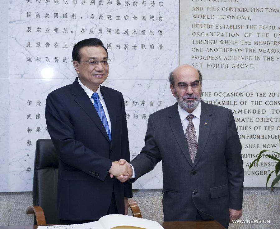 Li made the remarks when meeting Jose Graziano da Silva,director-general of the UN Food and Agriculture Organization (FAO).