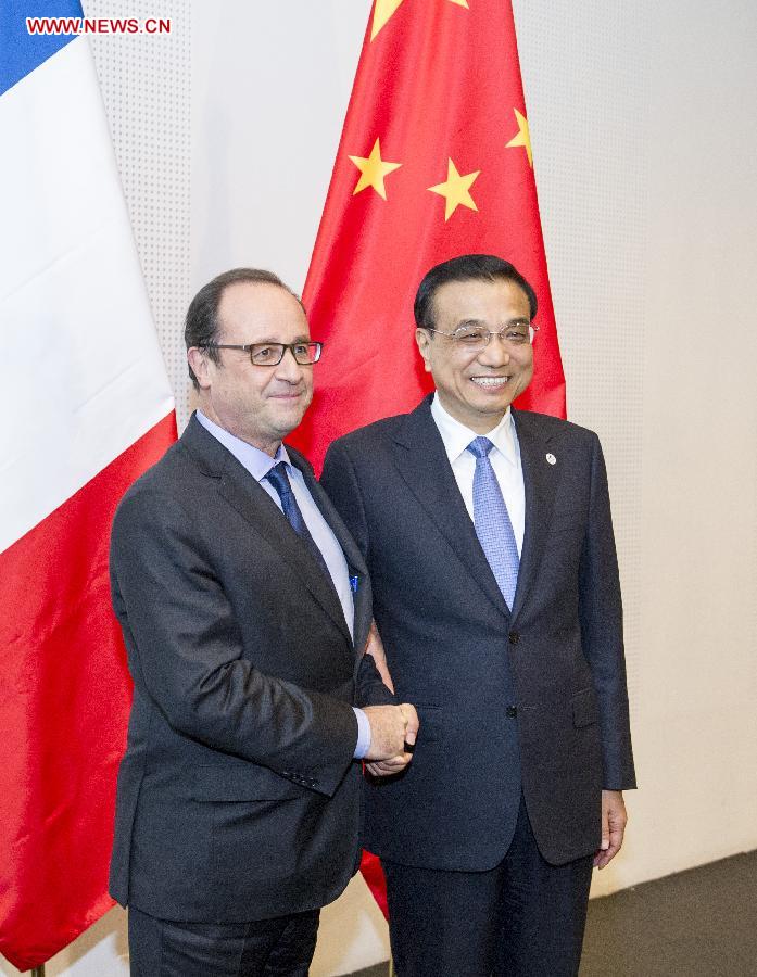 Chinese Premier Li Keqiang (R) meets with French President Francois Hollande in Milan, Italy, Oct. 16, 2014. (Xinhua/Wang Ye)