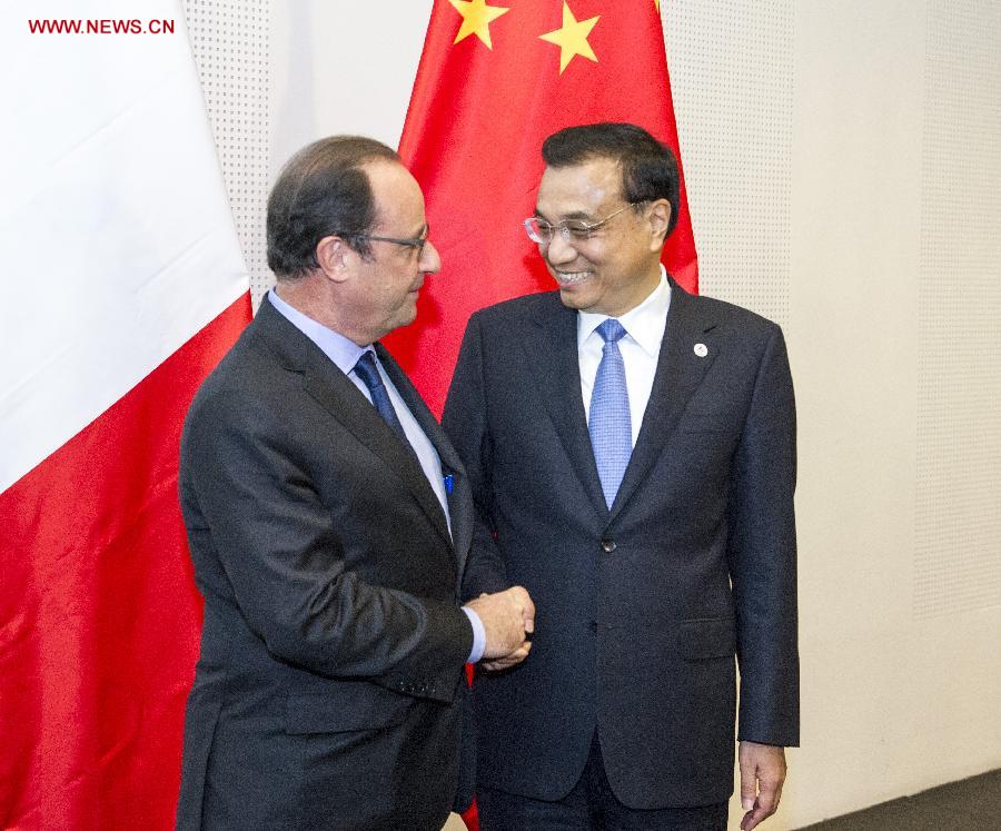 MILAN, Italy, Oct. 16 -- Visiting Chinese Premier Li Keqiang and French President Francois Hollande met here Thursday and pledged to further deepen bilateral ties and expand cooperation.