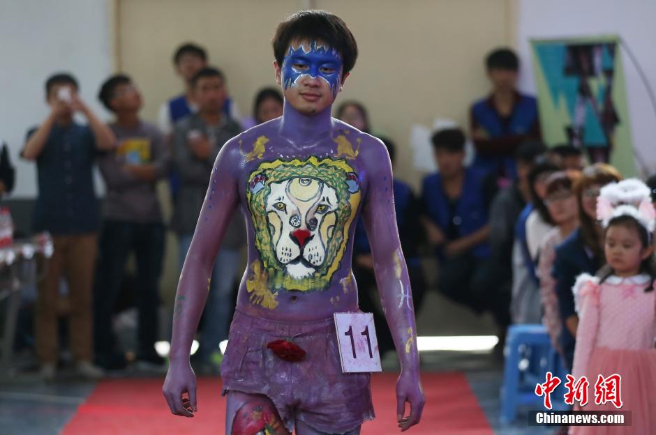 College students show body paintings in Nanjing. (CNS/Yang Bo)