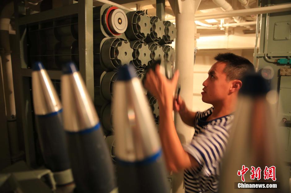 The newly-commissioned warship Quanzhou fires its main gun at the target in a maritime drill on October 15, 2014. Recently, the guided missile frigate Quanzhou of the East China Sea Fleet of the Chinese People's Liberation Army Navy (PLAN) has been engaged in coordination training with other warships of different types on various subjects including ship steering, refueling, ship towing and night navigation. This training is designed to verify the training effectiveness and speed up the generation of the combat capability of the frigate which was commissioned to the PLAN two months ago. (China News Service/Zhou Daoxian)