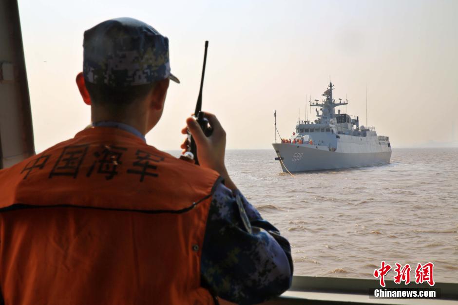 The newly-commissioned warship Quanzhou fires its main gun at the target in a maritime drill on October 15, 2014. Recently, the guided missile frigate Quanzhou of the East China Sea Fleet of the Chinese People's Liberation Army Navy (PLAN) has been engaged in coordination training with other warships of different types on various subjects including ship steering, refueling, ship towing and night navigation. This training is designed to verify the training effectiveness and speed up the generation of the combat capability of the frigate which was commissioned to the PLAN two months ago. (China News Service/Zhou Daoxian)