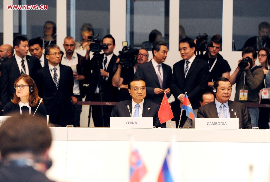 Chinese Premier Li Keqiang attends the closing ceremony of the tenth Asia-Europe Meeting (ASEM) in Milan, Italy, Oct. 17, 2014. (Xinhua/Rao Aimin)