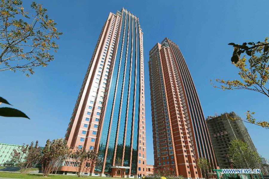 This undated photo provided by Korean Central News Agency (KCNA) shows the completed apartment houses for educators of Kim Chaek University of Technology. (Xinhua/KCNA)