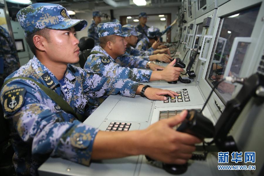 Chinese navy's Changbaishan Warship and Yuncheng warship conduct the air defense exercise in the Gulf of Aden and the waters off Somalia on Oct. 17, 2014. The two warships are part of the 18th batch of convoy fleet sent by the Chinese People's Liberation Army(PLA) Navy for escort missions in the Gulf of Aden. (Photo/Xinhua)