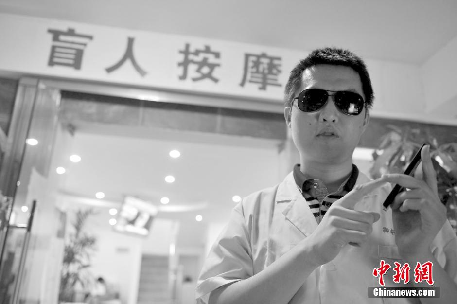 Xia Li dials telephone by hearing. (CNS/Liu Zhankun)