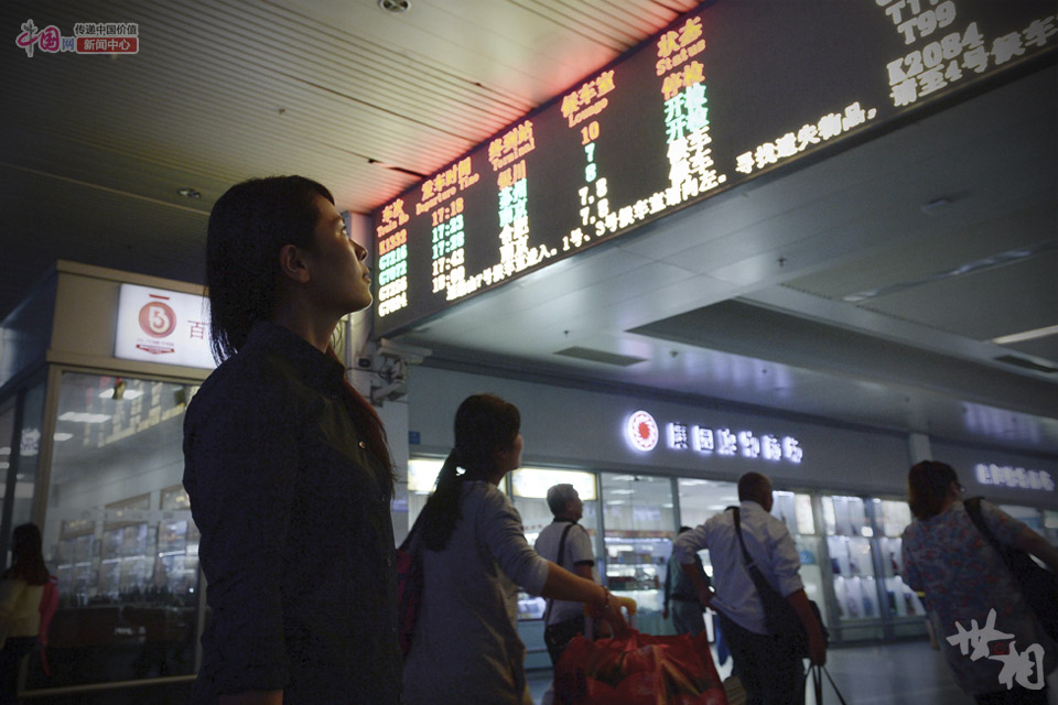 At Shanghai Railway Station, Lu checks information of the train she is going to take. (China.com.cn/Lai Xinlin)