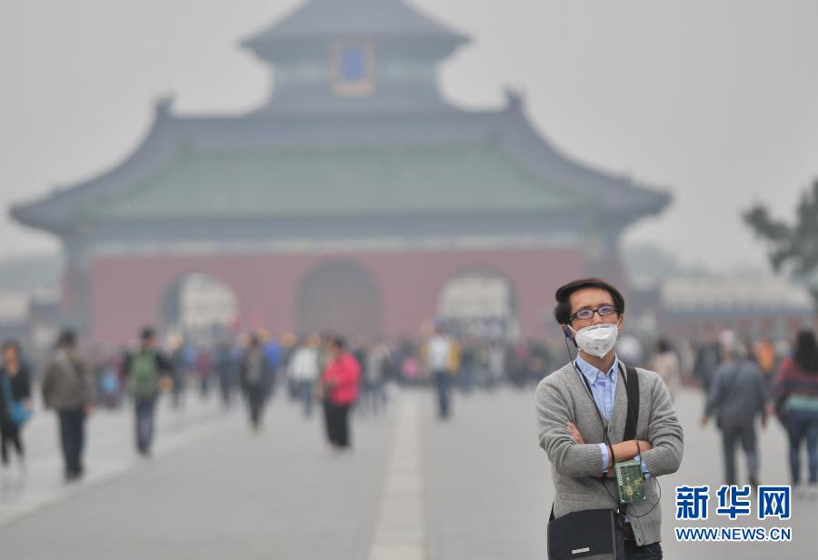 A visitor wearing mask walks near the Temple of Heaven in Beijing. (Photo/ Xinhua)