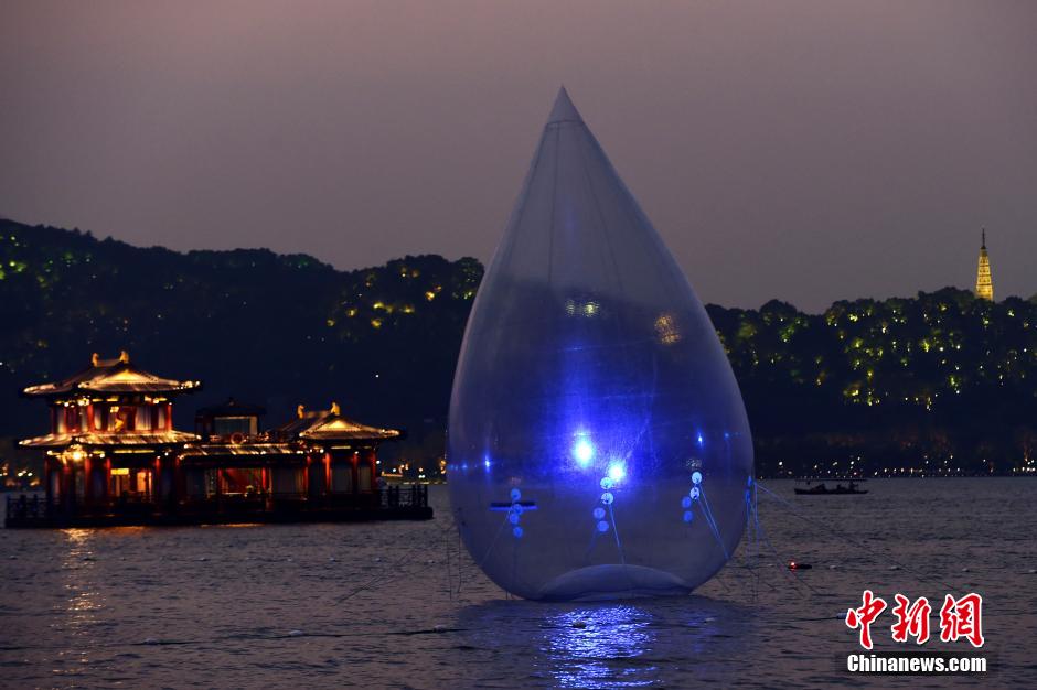 Giant water drops call for water conservation at West Lake (7)