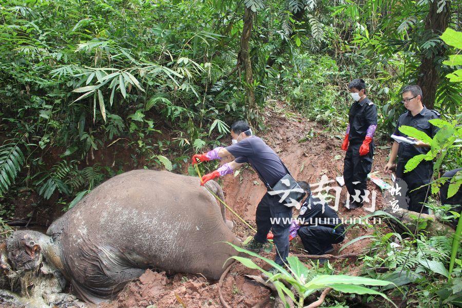 A carcass of a male Asian elephant without tusks was found on Oct. 16 in the forest in Mengla area, southwest China's Yunnan province. The body was already decomposed, and the tusks had been removed. It was shot by a standard firearm. A task force has been formed by the Forest Public Security Bureau to investigate the case. A reward of about $6,500 was offered to anyone who can provide clues to the investigation. (Photo/Yunnan.cn)