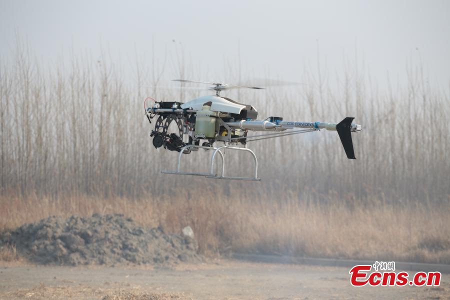 An unmanned aerial vehicle (UAV) is applied by environmental protection department to monitor and control illegal straw burning in Harbin, Heilongjiang province on October 22, 2014. Burning straw is the chief cause of the smog in north China. [Photo: China News Service/ Wang Dongliang]