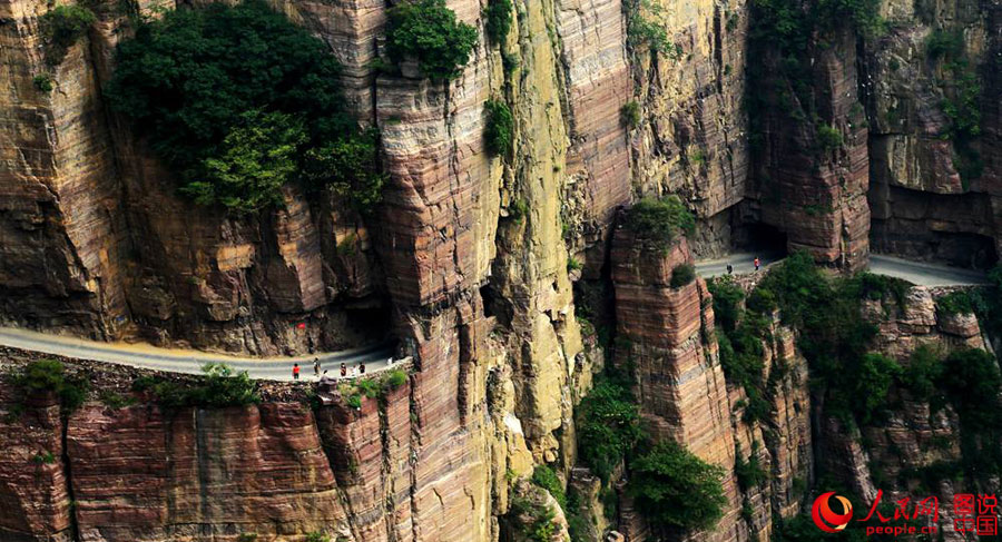 Located in Xinxiang city, central China’s Henan province, the Guoliang cliff corridor is a road built along the cliff. The construction of this miraculous road lasted five years from 1972 to 1977 and it was all built by hand by villagers of Guoliang Village. It is now known as one of “the 10 steepest roads in the world”. (Photo source: people.cn)