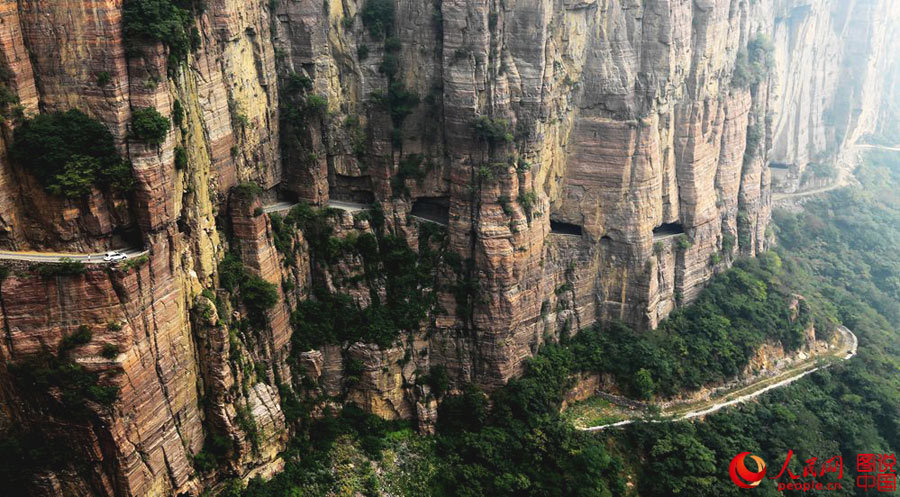 Located in Xinxiang city, central China’s Henan province, the Guoliang cliff corridor is a road built along the cliff. The construction of this miraculous road lasted five years from 1972 to 1977 and it was all built by hand by villagers of Guoliang Village. It is now known as one of “the 10 steepest roads in the world”. (Photo source: people.cn)