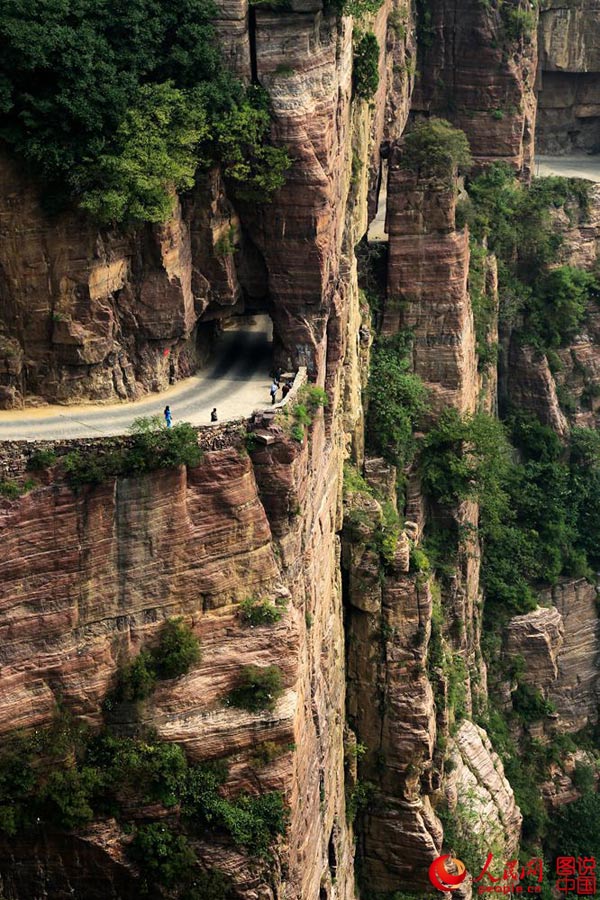 Located in Xinxiang city, central China’s Henan province, the Guoliang cliff corridor is a road built along the cliff. The construction of this miraculous road lasted five years from 1972 to 1977 and it was all built by hand by villagers of Guoliang Village. It is now known as one of “the 10 steepest roads in the world”. (Photo source: people.cn)