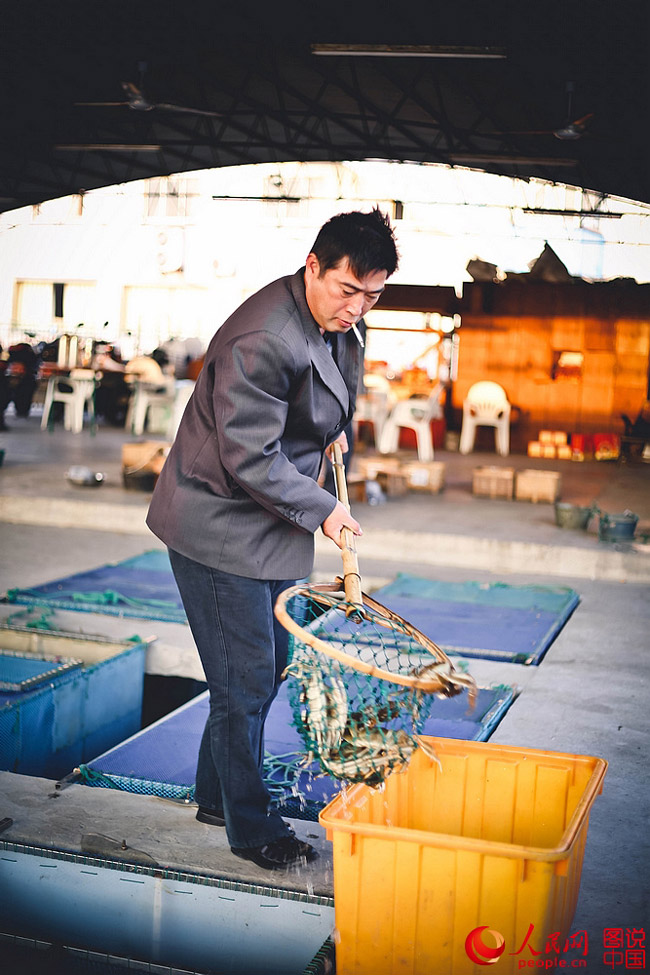 Photo shows the harvest of the hairy crabs in Yangcheng Lake in Jiangsu province. (People's Daily Online/Wang Chu)