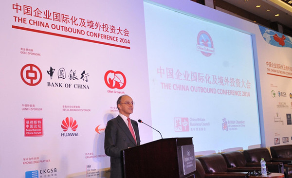 | Lord Sassoon, Chairman of CBBC delivers a speech at China Outbound Conference 2014. (Photo provided by CBBC) |