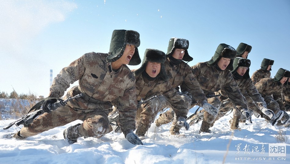 After a snow storm, soldiers from Shenyang Military Region conduct military drill about fighting skills on snowy fields and shooting exercise under freezing weather in Mohe, northeast China's Heilognjiang province on Oct.19, 2014 (Chinamil.com.cn/PLA Daily)