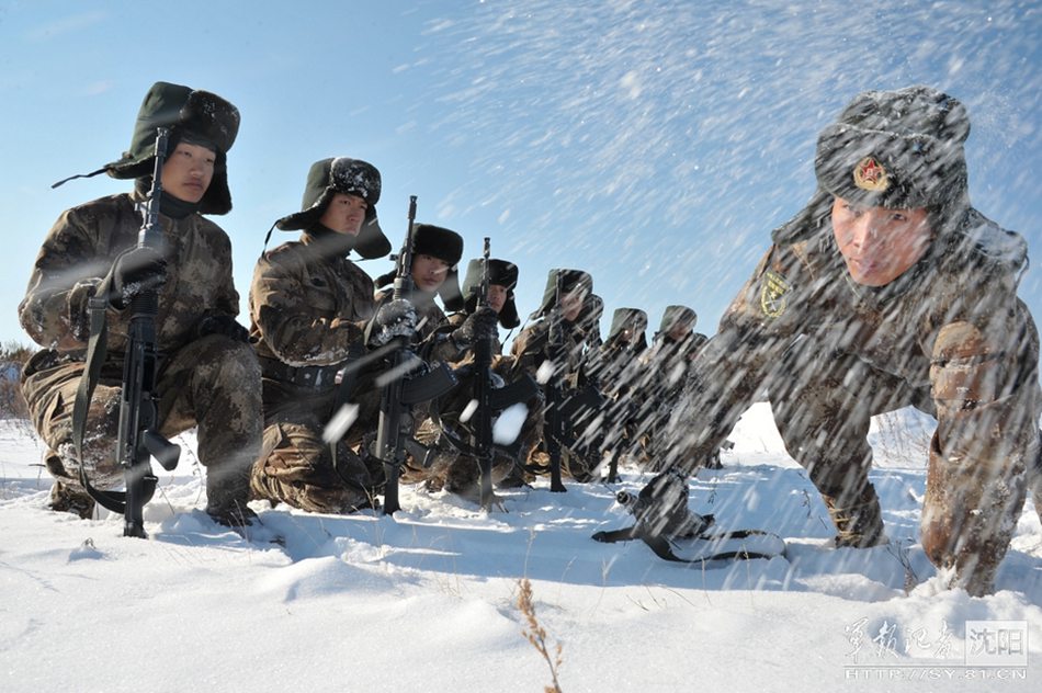 After a snow storm, soldiers from Shenyang Military Region conduct military drill about fighting skills on snowy fields and shooting exercise under freezing weather in Mohe, northeast China's Heilognjiang province on Oct.19, 2014 (Chinamil.com.cn/PLA Daily)