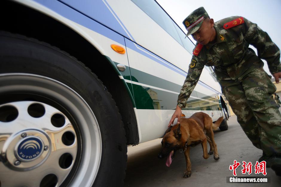 | A handler trains a dog at a police dog unit in Nanjing, capital of southeast China's Jinagsu province, Oct. 22, 2014. (CNSPHOTO/Li Ke) |
