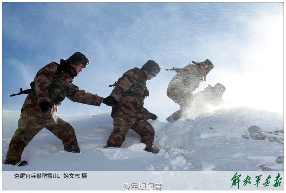 Soldiers climb over a snow mountain. (PLA Pictorial/Ji Wenzhi)