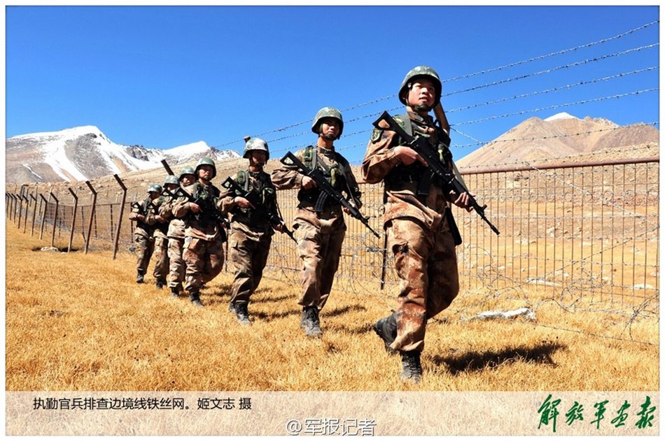 Soldiers patrol along iron gauze. (PLA Pictorial/Ji Wenzhi)