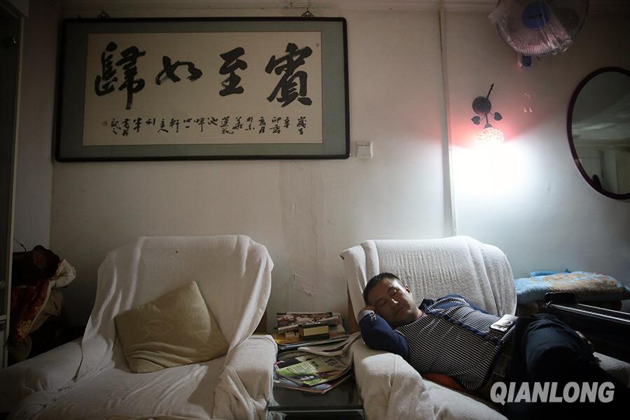 After the competition, He goes back to his parlor to rest on Oct. 19, 2014. (Qianlong/Li He)