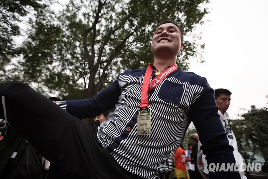 He Yajun puts on the medal he wins from the competition on Oct. 19, 2014. (Qianlong/Li He)