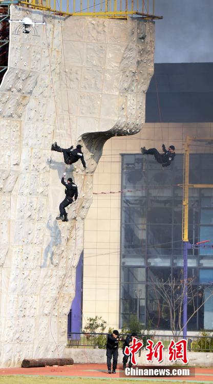 A comprehensive anti-terrorist drill is held in Hefei, central China’s Anhui province on Oct. 26, 2014. Over 600 emergency personnel and 77 emergency vehicles from eight emergency response forces, including special police, armed police, fire department, medical aid, etc., participated in the drill. (Chinanews/Zhang Yazi)
