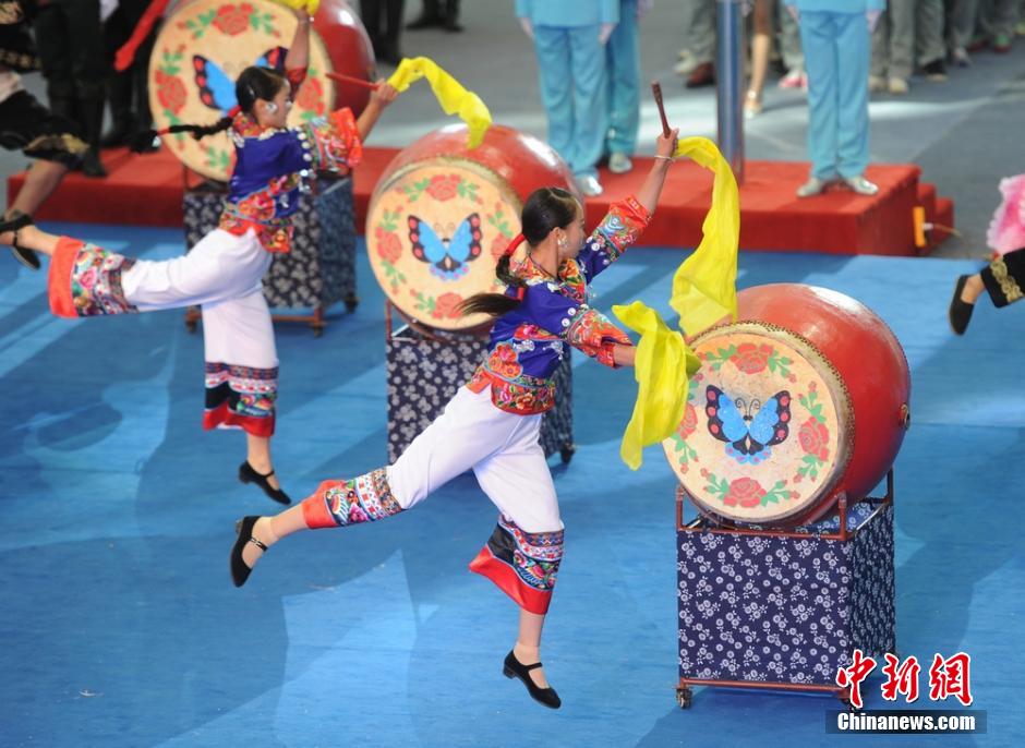 The performance of Miao Drum from the team of Jishou. (CNS/Yang Huafeng)
