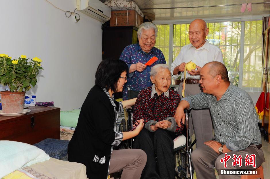 The younger generations play games and chat with their grandmother. (CNS/Hu Qingming)