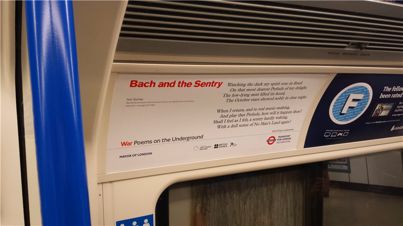 | First World War poems appear in the London Underground. (People's Daily Online/Bai Tianxing) |