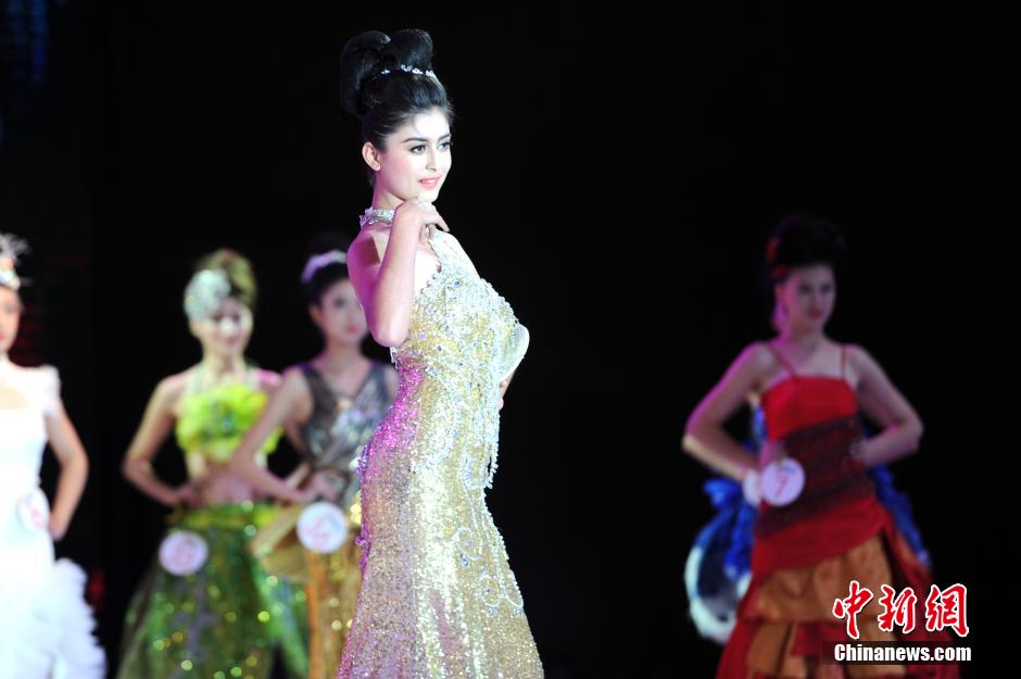 Thirty contestants from eight cities compete in the national final of the 1st Image Ambassador of the Silk Road Competition in Xi'an, northwest China's Shaanxi province on Oct. 25, 2014. (CNS/Zhang Yuan)