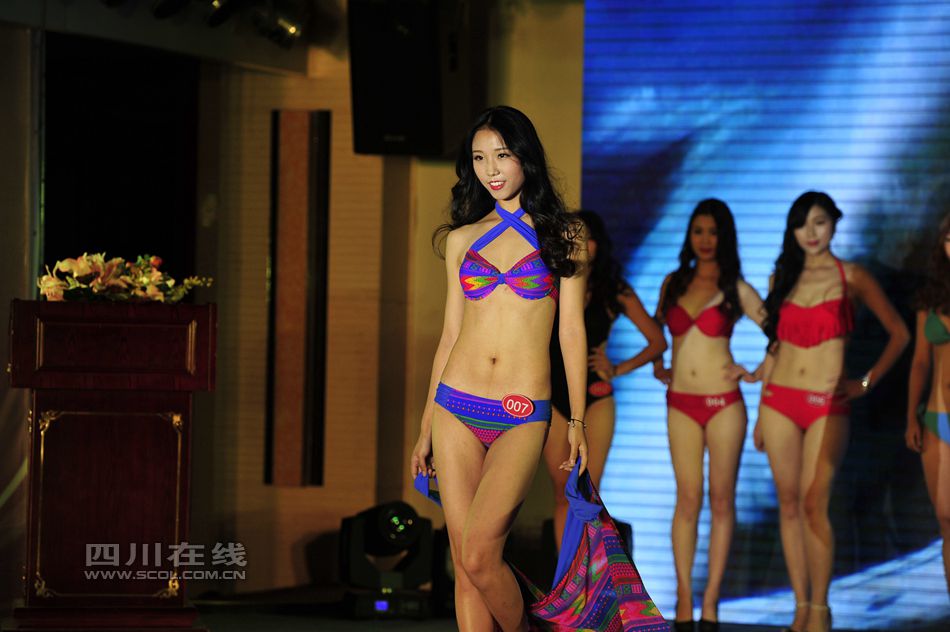 The semifinal of 2014 Miss Sichuan Tourism is held in Chengdu, southwest China's Sichuan province on Oct.27, 2014. Competing in several parts including Cheongsam show, swimming suits show, the top three finishers will be qualified for 2014 Miss China Tourism. (Scol.com.cn/Wu Dan)