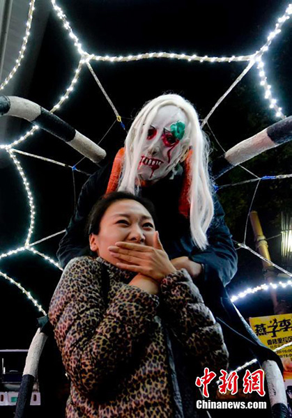 Visitors experience ghost atmosphere in Beijing Happy Valley. (CNS/Lu Xin)