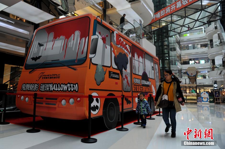 A ghost bus parks in the shopping mall of north China’s Taiyuan City. (CNS/Wu Junjie)