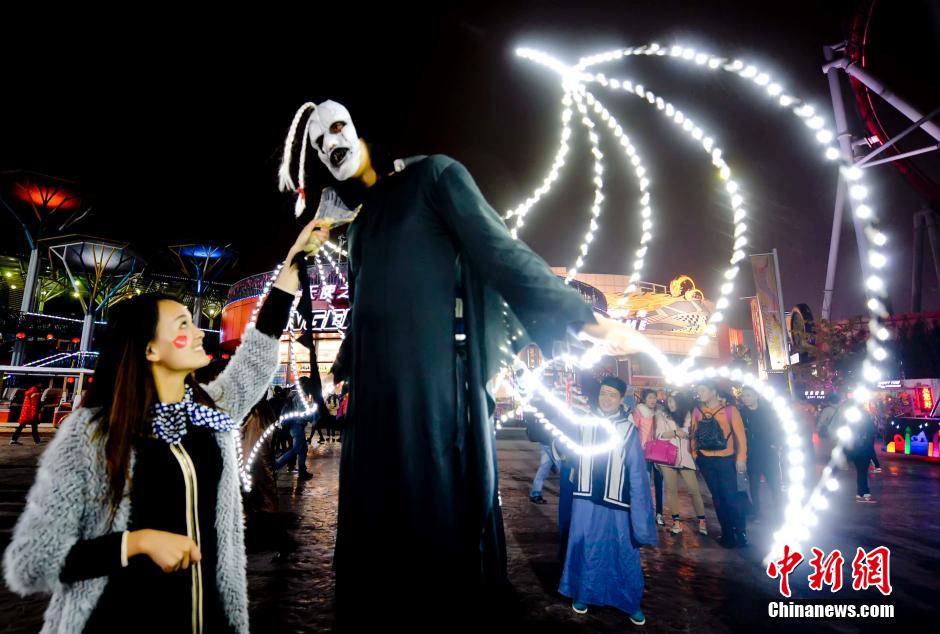 Visitors experience ghost atmosphere in Beijing Happy Valley. (CNS/Lu Xin)