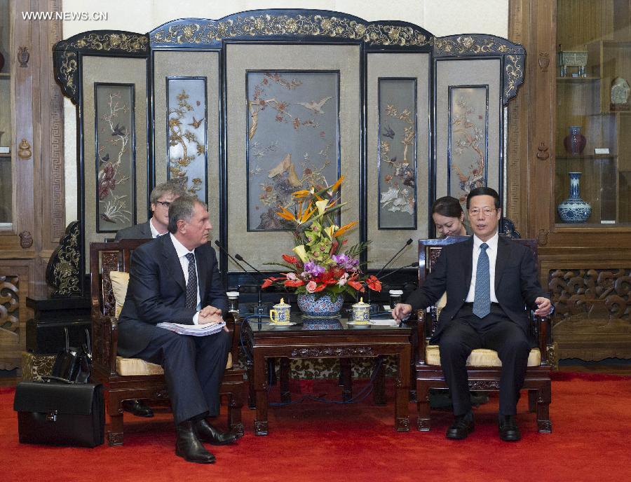 BEIJING, Oct. 31 -- Chinese Vice Premier Zhang Gaoli met here Friday with Russian oil company Rosneft chief Igor Sechin to pave the way for a meeting between Chinese and Russian presidents during the APEC summit in Beijing next month.