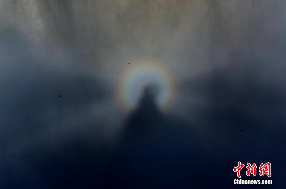 "Budha Halo" is seen after rainfalls at Mount Huangshan in east China's Anhui province, Nov. 1, 2014. (Source: Chinanews.com)