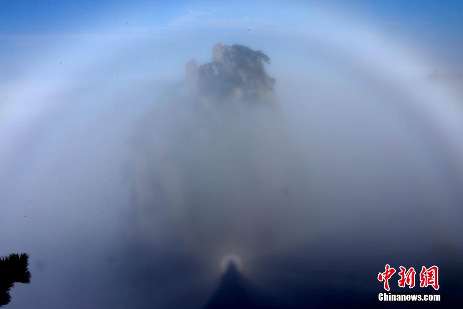 "Budha Halo" is seen after rainfalls at Mount Huangshan in east China's Anhui province, Nov. 1, 2014. (Source: Chinanews.com)