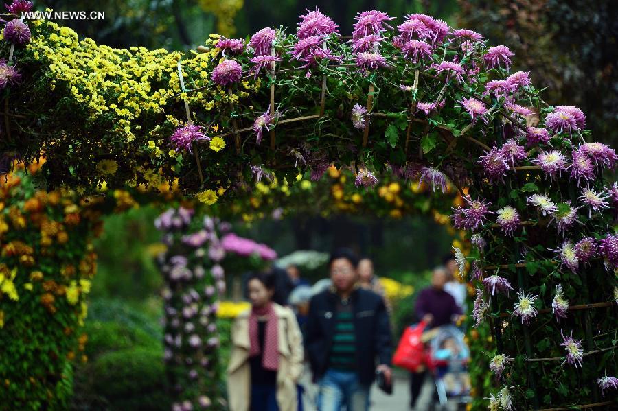 Photo taken on Nov. 5, 2014 shows colorful chrysanthemum flowers at Baotu Spring Park in Jinan, capital of east China's Shandong Province. An autumn chrysanthemum show kicked off at Baotu Spring Park in Jinan recently. A total of some 200 kinds of chrysanthemum attracted lots of visitors. (Xinhua/Guo Xulei)