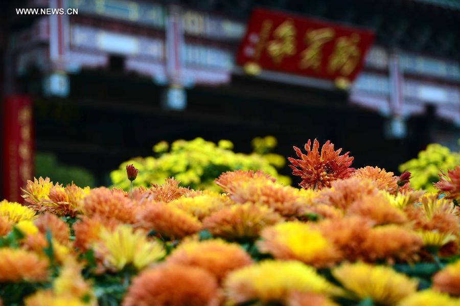 Colorful chrysanthemum flowers bloom at Baotu Spring Park in Jinan, capital of east China's Shandong Province, Nov. 5, 2014. An autumn chrysanthemum show kicked off at Baotu Spring Park in Jinan recently. A total of some 200 kinds of chrysanthemum attracted lots of visitors. (Xinhua/Guo Xulei)