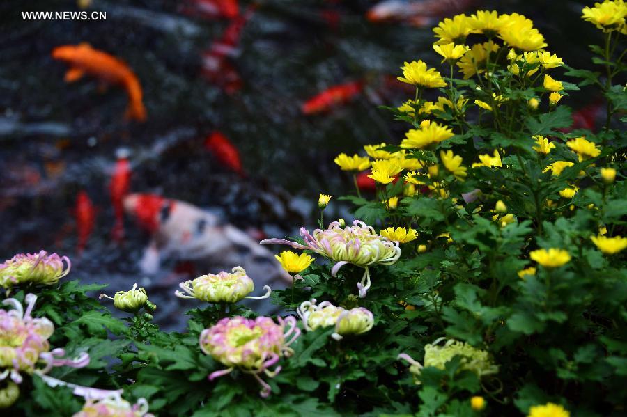 Photo taken on Nov. 5, 2014 shows colorful chrysanthemum flowers at Baotu Spring Park in Jinan, capital of east China's Shandong Province. An autumn chrysanthemum show kicked off at Baotu Spring Park in Jinan recently. A total of some 200 kinds of chrysanthemum attracted lots of visitors. (Xinhua/Guo Xulei)