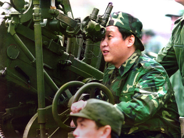 Photo taken in Nov. 1997 shows Xi Jinping, then Deputy Party Secretary of Fujian and First Political Commissar of Fujian Reserve Artillery Division (former Fujian Reserve Infantry Division), tries his hand during a gun crew training. (Photo source: PLA Pictorial)