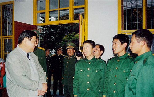 Photo taken on Feb. 9, 2000 shows Xi Jinping, then Deputy Party Secretary and Governor of Fujian, visiting newly enlisted soldiers of the Armed Police Force in Fujian. (Photo source: PLA Pictorial)