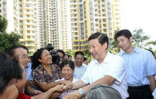Photo taken on Sept. 6, 2010 shows Xi Jinping, then member of the Standing Committee of the Political Bureau, member of the Secretariat of the Communist Party of China and Vice President of China, visiting residents of Jin'an neighborhood in Xiamen, Fujian province. (Photo source: Xinhua)