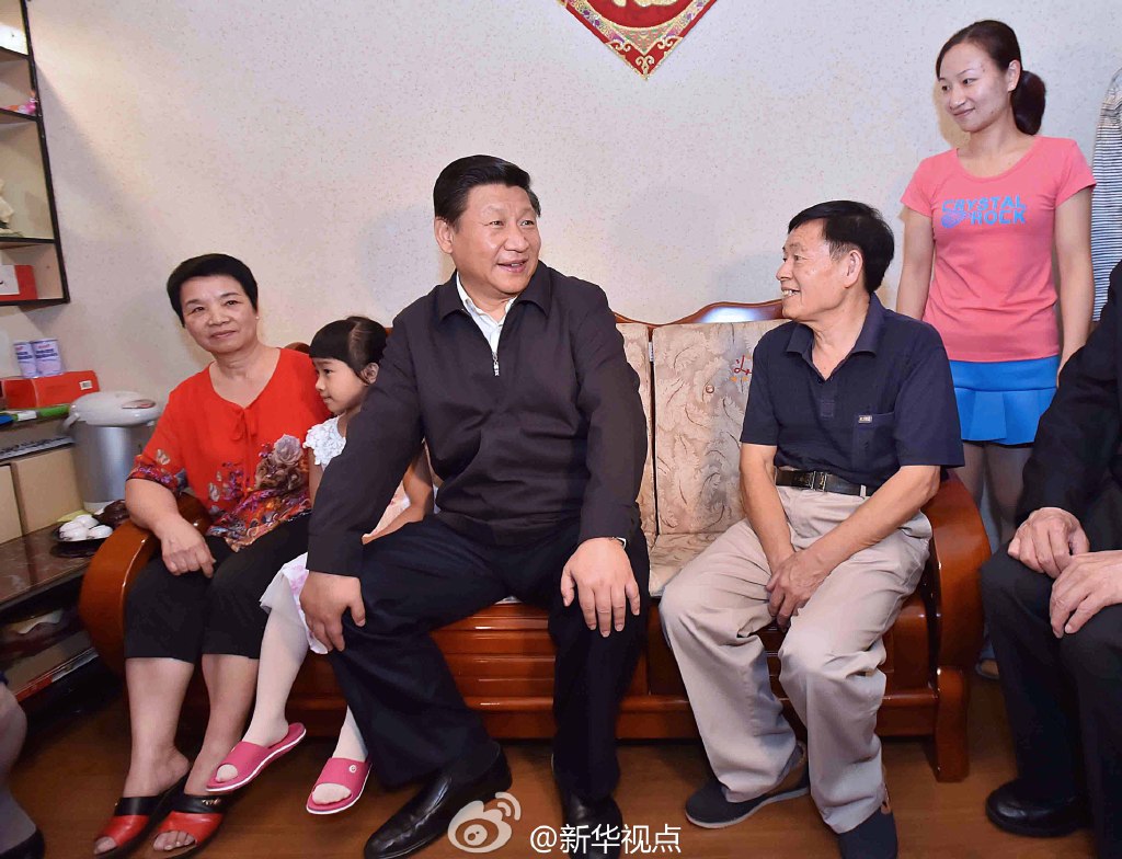 | Chinese President Xi Jinping visits a family in Fuzhou, Fujian province, Nov. 1, 2014. (Photo source: Weibo account of Xinhua Shi Dian) |