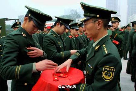 Soldiers are grieved to bid farewell to their military ranks and guns when are discharged from active duty. (Photo/Official Micro-blog of Junbao Jizhe)