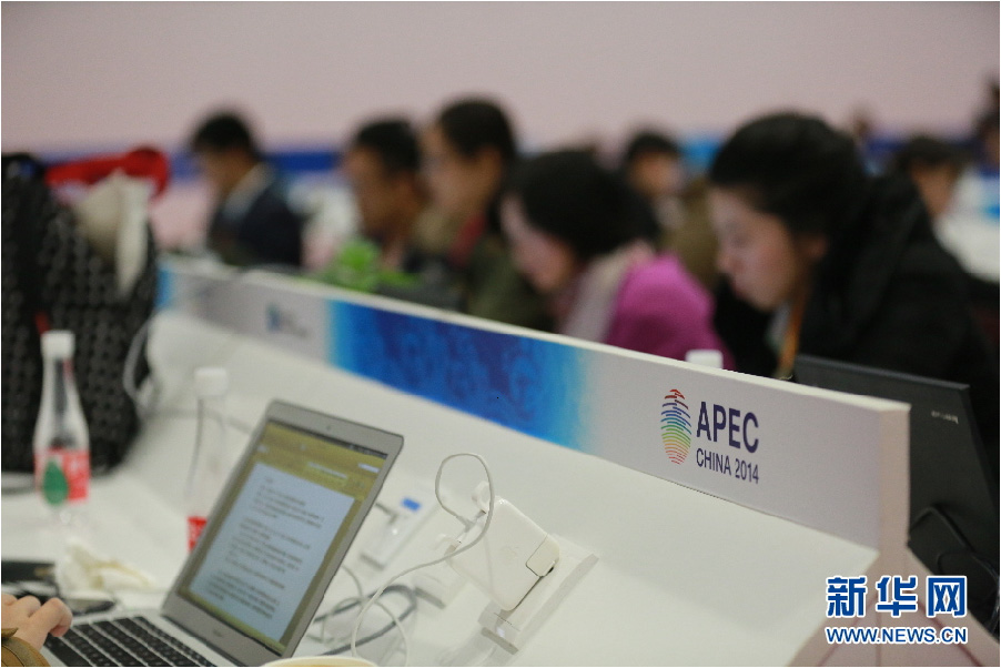 The public work space of the APEC press center. (Xinhuanet/Wang Shuai)