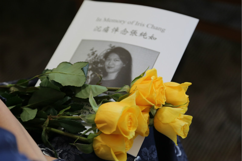 People attend the memorial service and pay tribute to Iris Chang on Nov. 9, 2014 at the Gate of Heaven Catholic Cemetery in Los Altos, California. (People’s Daily Online/ Han Shasha)